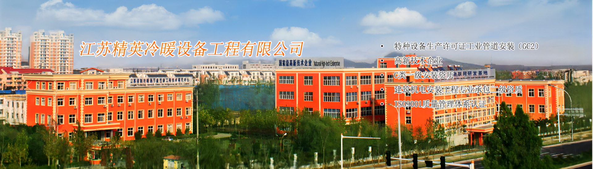 江蘇精英冷暖設備工程有限公司位于江蘇省徐州高新技術產(chǎn)業(yè)開發(fā)區(qū)第二工業(yè)園昆侖路14-2號,為高新技術企業(yè),公司擁有ISO9001質量管理體系認證、ISO14001環(huán)境管理體系認證、ISO45001職業(yè)健康安全管理體系認證、工業(yè)管道安裝(特種設備安裝、修理、改造)GC2資質、建筑機電安裝工程專業(yè)承包貳級資質、安全生產(chǎn)許可證、C類I級安裝資質、農(nóng)機補貼定點企業(yè)及制冷設備國家標準《GB/T18430.2-2008》、《藥品冷鏈物流運作規(guī)范》、《冷鏈物流分類與基本要求》的起草單位等資質。